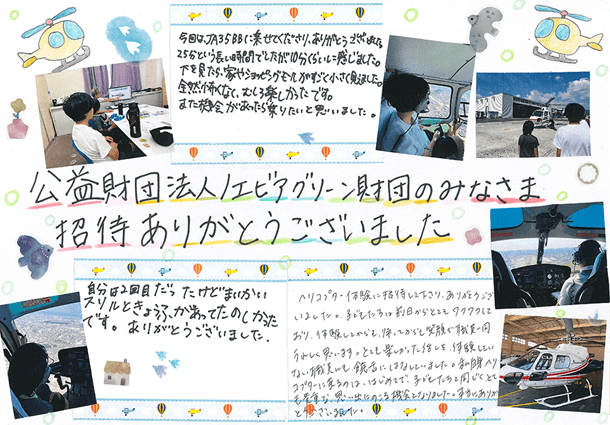 ヘリコプターに乗って、大阪の建造物や自然を観察しました♪